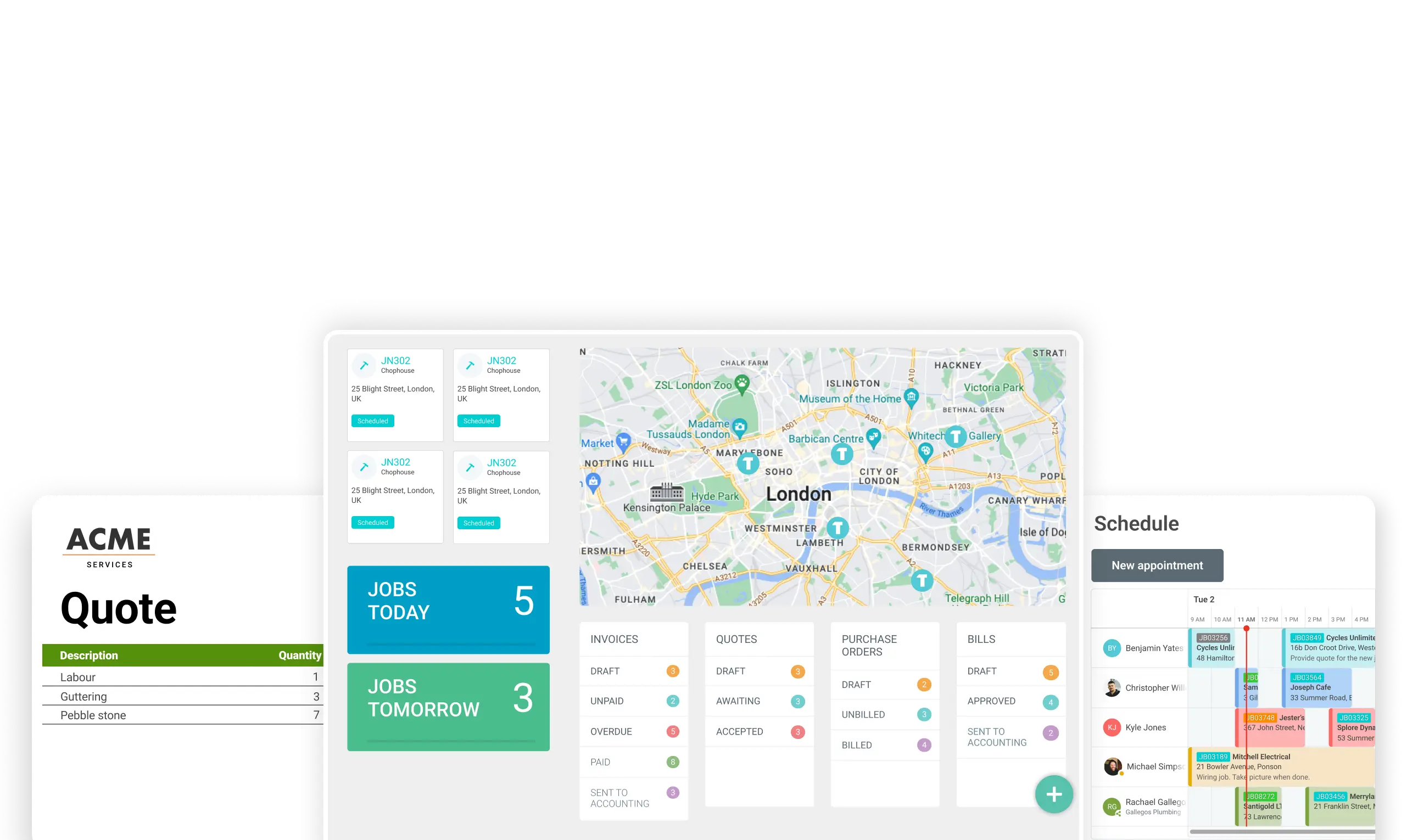 The all-in-one job app for electricians, plumbers, gas engineers, HVAC techs, builders, and other trade businesses.